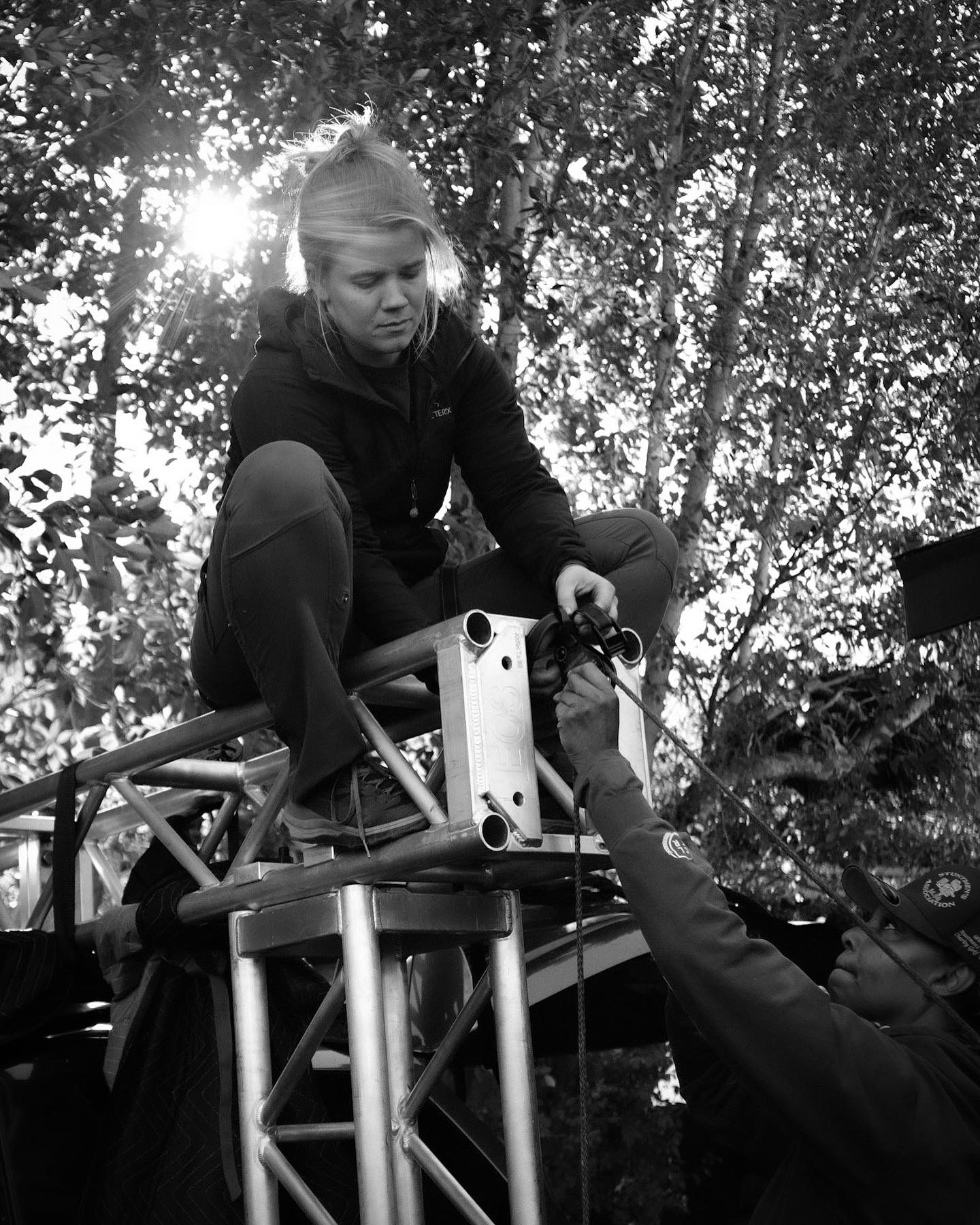 An active member of both IATSE (as a rigging grip) and SAG-AFTRA (as a stunt utility), Tiffany says she’s been blessed to work alongside some incredibly talented people mentoring her as a rigger and helping to further develop her technical and logistical skills. More recently, her involvement in the stunt community continues to drive her passion not only for rigging, but for broader storytelling and collaboration as well.